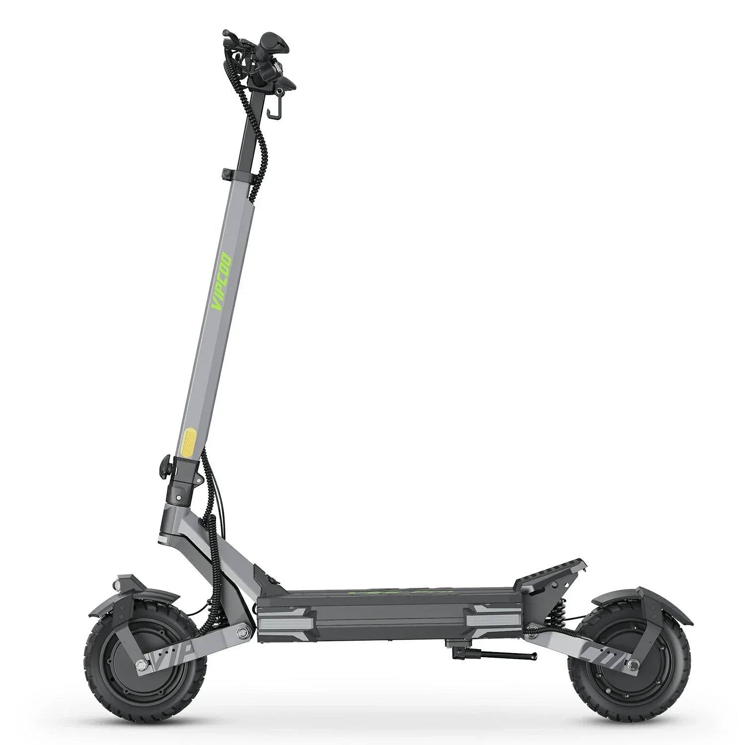 Designed for off-road dominance, the VIPCOO VS6 Pro features a professional four-arm suspension system built to absorb hard impacts, reliably cushioning even 15 cm drops at high speed. Complementing this is a pair of 10-inch pneumatic “all-terrain” tires. Their self-cleaning tread and three-ply puncture-resistant construction ensure both grip and durability, whether you’re on city pavements, gravel, or softer surfaces.